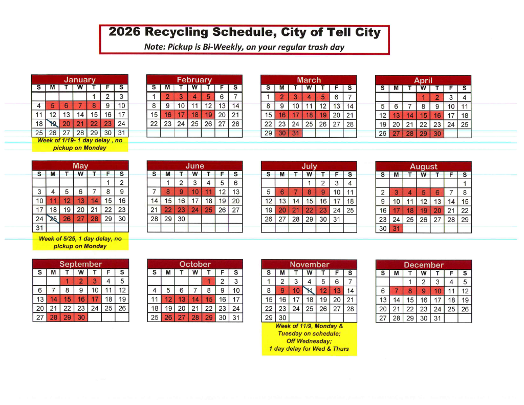 In addition to all of this, the Street Commissioner also manages Tell City’s trash removal and recycling program. And, because burning trash is banned in this community, it has grown into a massive program, resulting in the pick-up and disposal of more than 1,800 tons of trash, and more than 400 tons of recyclable materials every year. Each spring, the Street Department holds its Annual Spring Clean-up and, in one week, collects more than 130 tons of household trash not typically allowed during the rest of the year.